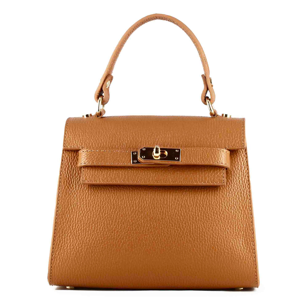 Borsa a mano elegante Pelle martellata di alta qualità colore marrone,Interno capiente Doppia chiusura con twist in metallo colore oro e cerniera interna. Interno in pelle,Manico in pelle